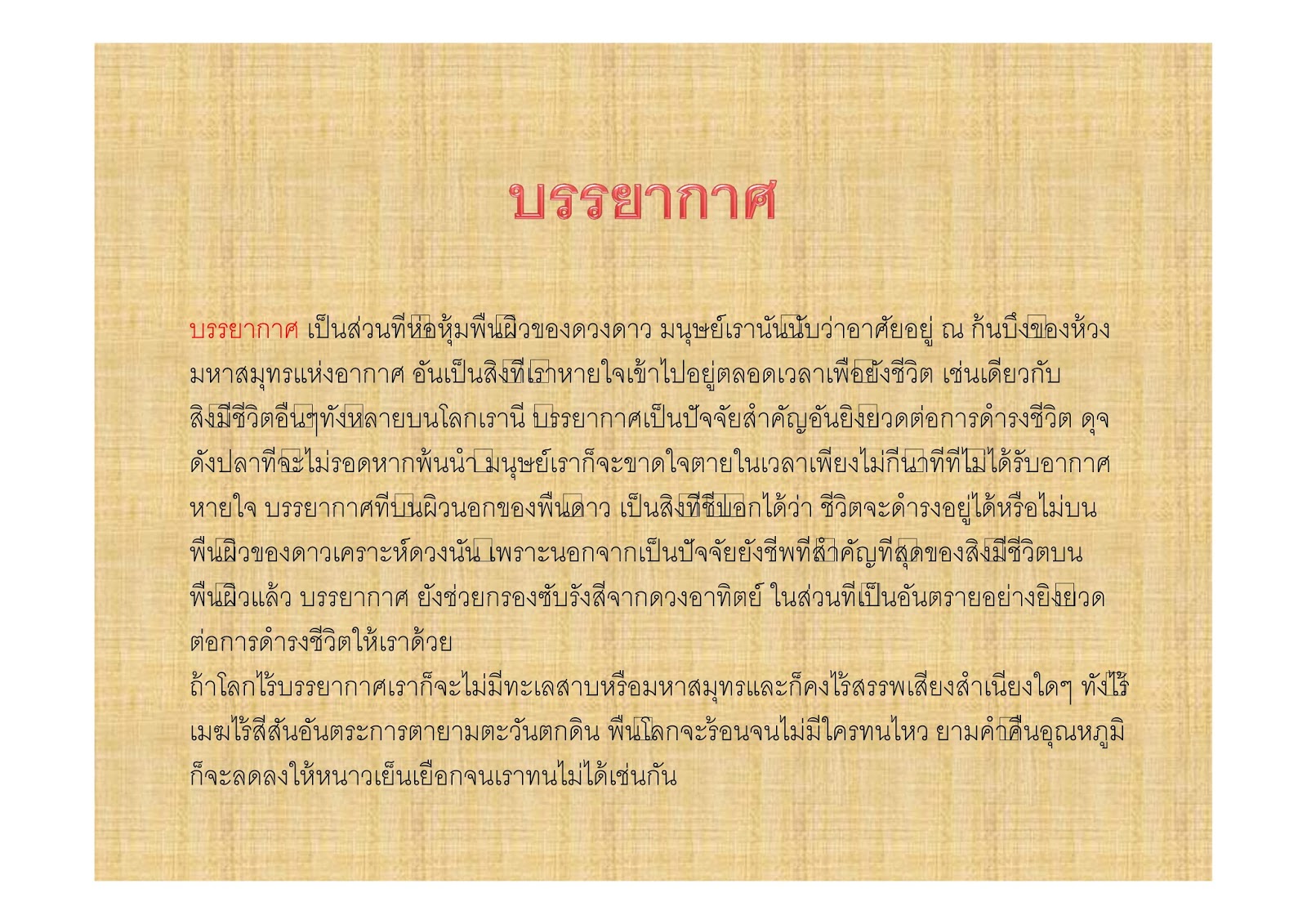 ผลงานนักเรียนเรื่อง บรรยากาศ ชั้นมัธยมศึกษาปีที่ 1